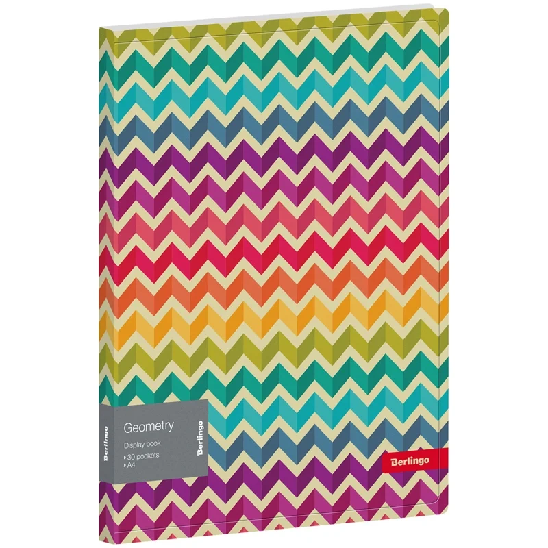 Папка Berlingo серии Geometry с 30 вкладышами формата А4 - отличный и стильный помощник для хранения документов с разноцветным геометричным рисунком на обложке. Толщина обложки - 600 мкм. Тип скрепления – термосварка. Ширина корешка - 17 мм. Папка изготовлена из высококачественного полипропилена с матовой текстурой поверхности 'песок', на которой не видно отпечатков пальцев и мелких царапин. Внутренняя сторона обложки имеет белый цвет и оснащена плотным прозрачным карманом для удобного хранения мелочей: ручки, заметок, визиток, дисков, флешек и др. Папка выполнена в размере 310*233*17 мм. Папка имеет 30 прозрачных листов-карманов увеличенной толщины 30 мкм, надёжно скреплённых сваркой. Вмещает до 100 бумажных листов. Индивидуальная упаковка в прозрачный пакет.• Количество вкладышей: 30;• Формат: А4;• Цвет: рисунок;• Ширина корешка: 17 мм