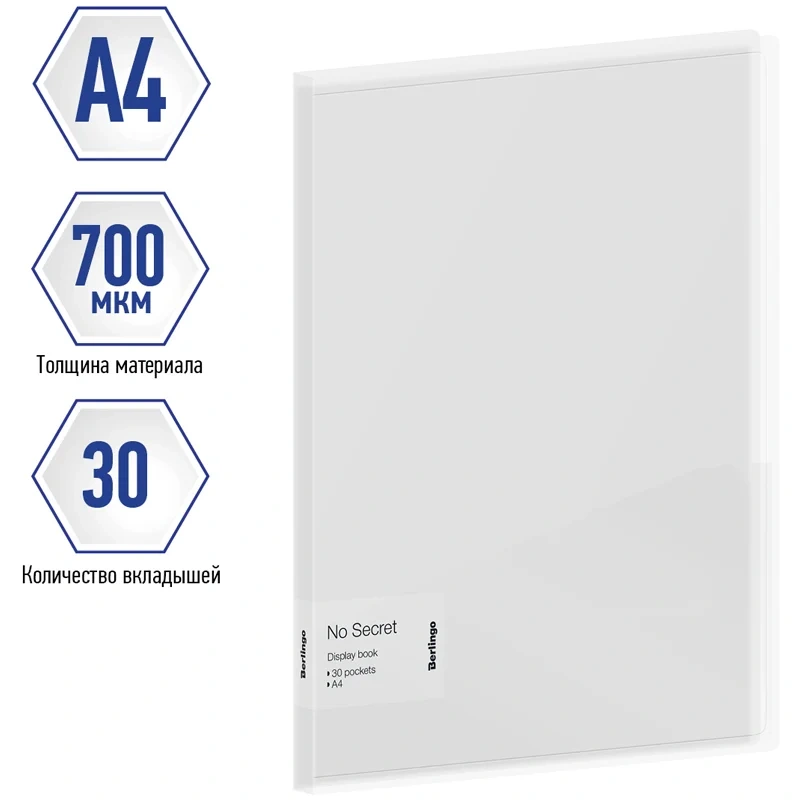 Папка с 30 вкладышами Berlingo 'No Secret', 17мм, 700мкм, полупрозрачная, с внутр. карманом