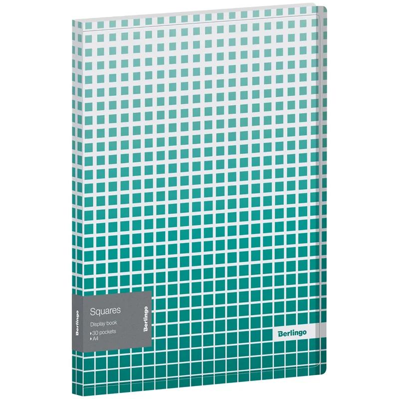 Папка с 30 вкладышами Berlingo 'Squares', 17мм, 600мкм, с внутр. карманом, с зеленым рисунком