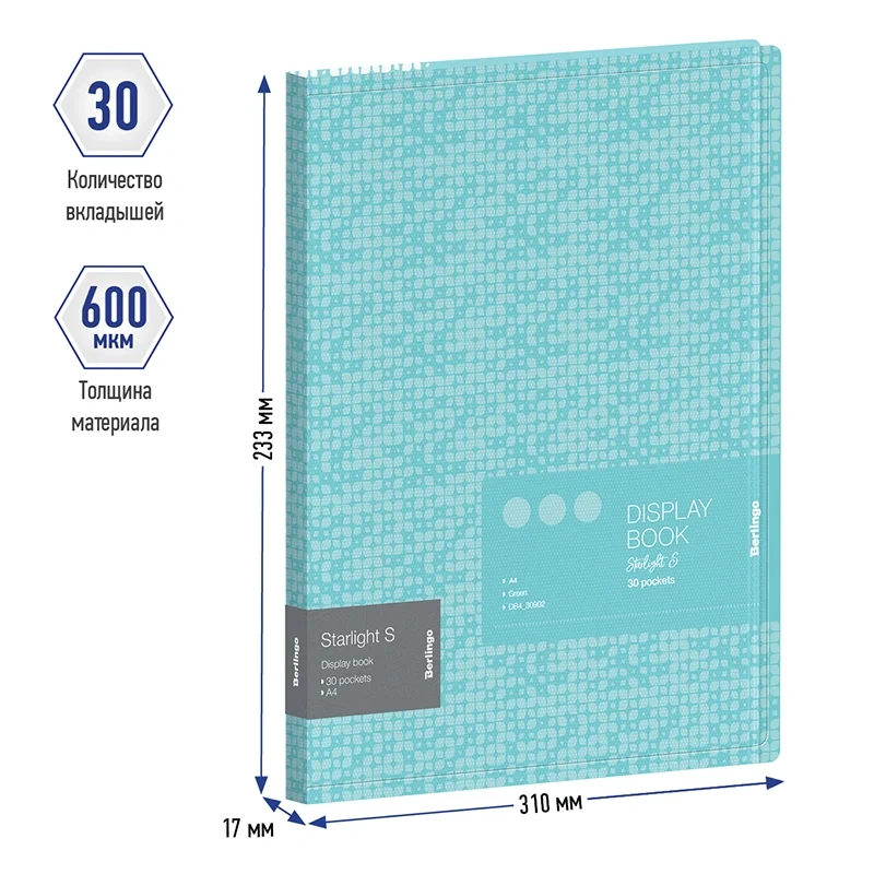 Папка с 30 вкладышами Berlingo 'Starlight S', 17мм, 600мкм, зеленая, с внутр. карманом, с рисунком