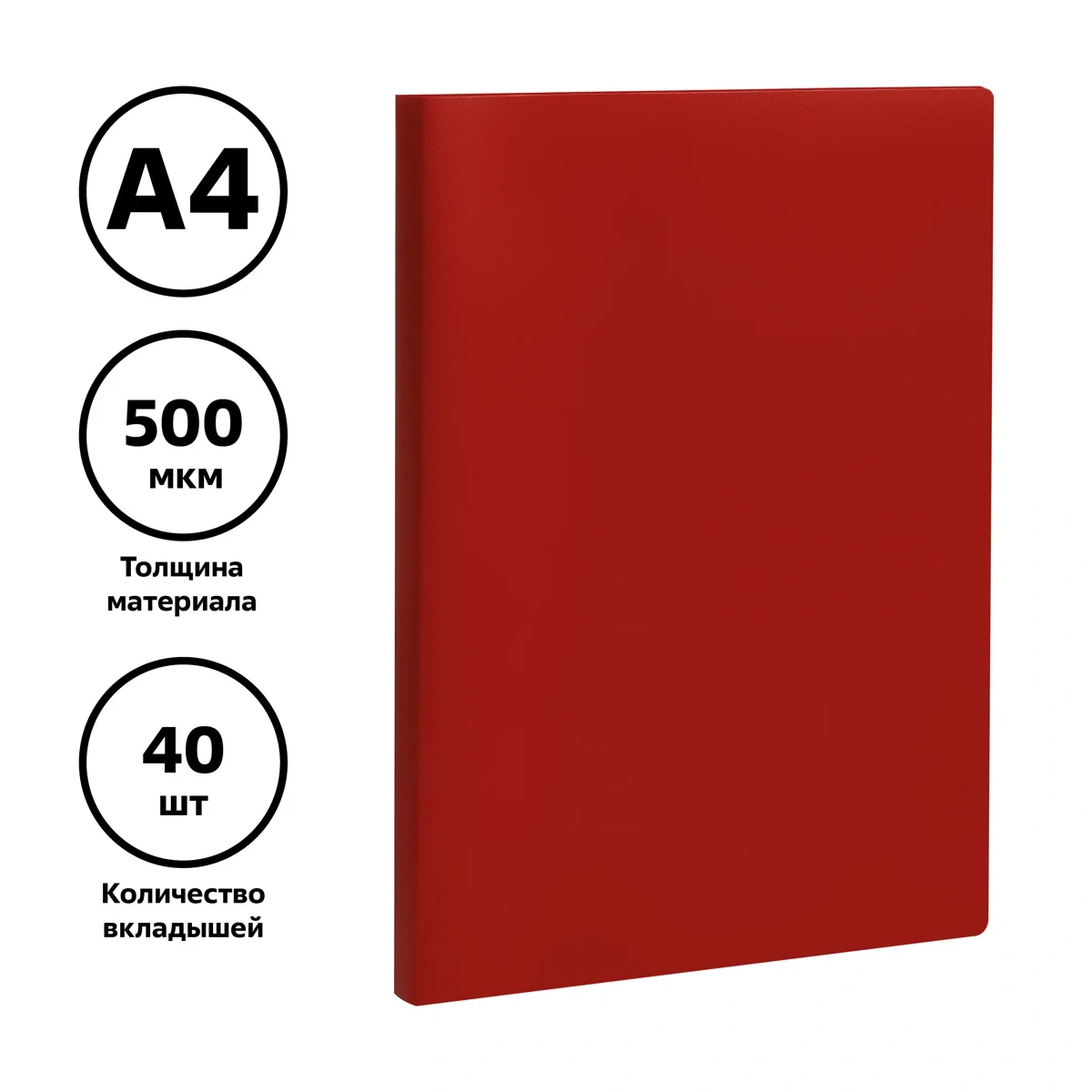 Папка с 40 вкладышами СТАММ А4, 21мм, 500мкм, пластик, красная