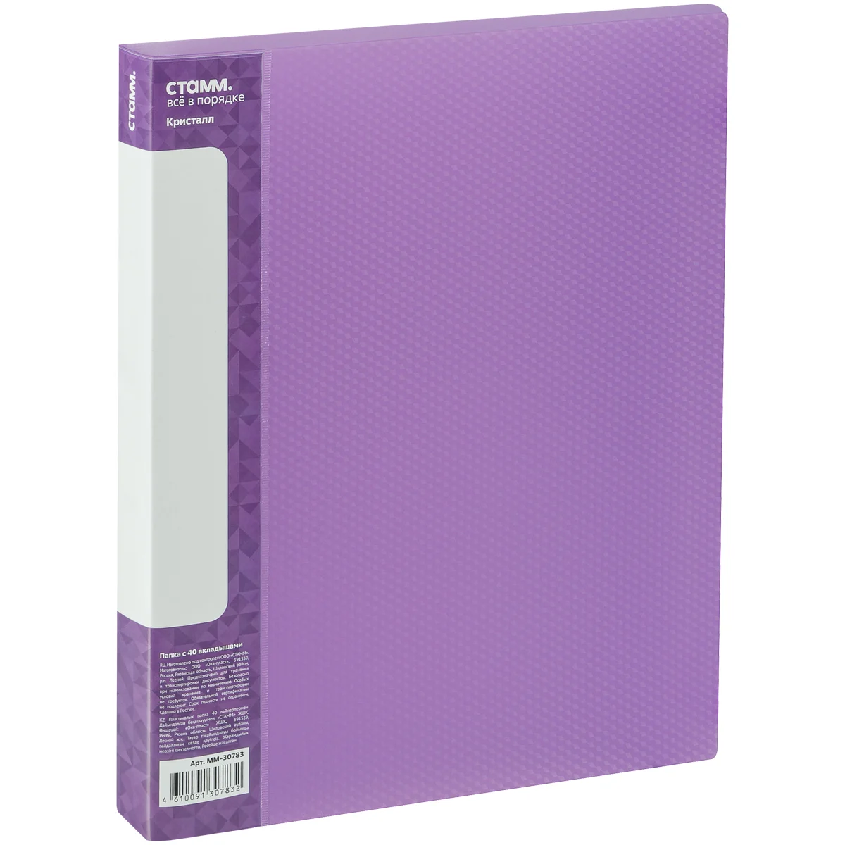 Папка с 40 вкладышами СТАММ 'Кристалл' А4, 21мм, 700мкм, пластик, фиолетовая