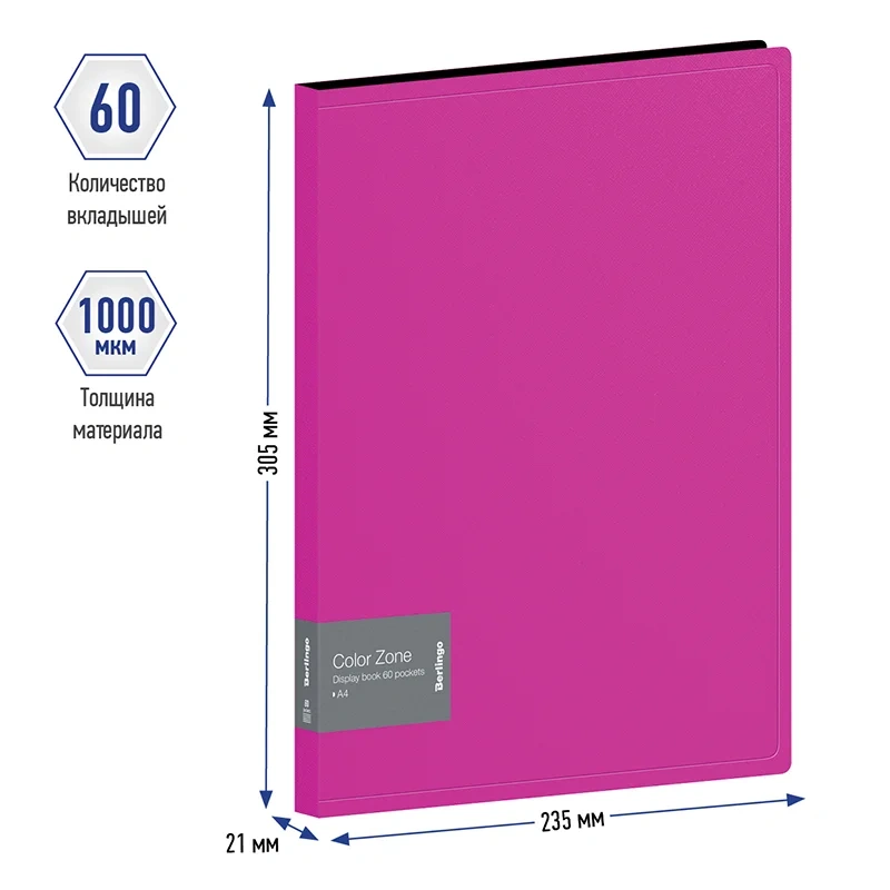 Папка с 60 вкладышами Berlingo 'Color Zone', 21мм, 1000мкм, розовая