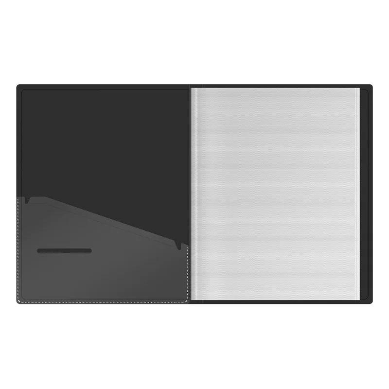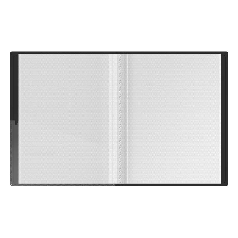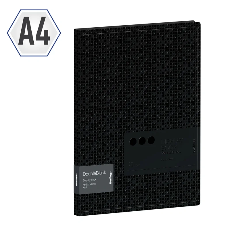 Папка Berlingo серии DoubleBlack с 60 вкладышами формата А4 - отличный и стильный помощник для хранения документов черного цвета с рельефным рисунком UV-лаком. Толщина обложки - 600 мкм. Тип скрепления – термосварка. Ширина корешка - 24 мм. Папка изготовлена из высококачественного полипропилена с матовой текстурой поверхности 'песок', на которой не видно отпечатков пальцев и мелких царапин. Внутренняя сторона обложки имеет чёрный цвет и оснащена плотным прозрачным карманом для удобного хранения мелочей: ручки, заметок, визиток, дисков, флешек и др. Папка выполнена в размере 310*233*24 мм. Папка имеет 60 прозрачных листов-карманов увеличенной толщины 30 мкм, надёжно скреплённых сваркой. Вмещает до 300 бумажных листов. Индивидуальная упаковка в прозрачный пакет.