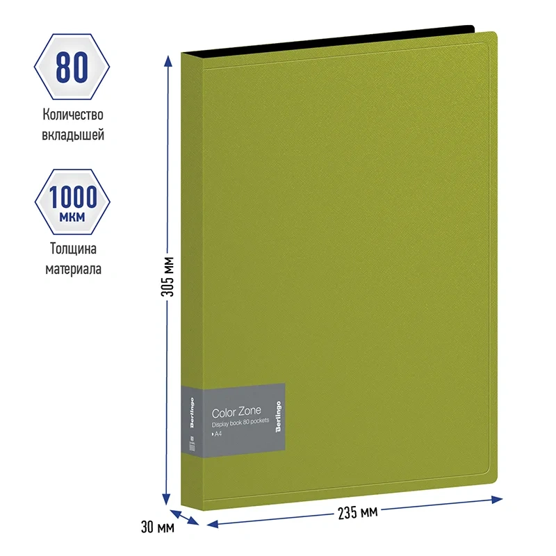 Папка с 80 вкладышами Berlingo 'Color Zone', 30мм, 1000мкм, салатовая