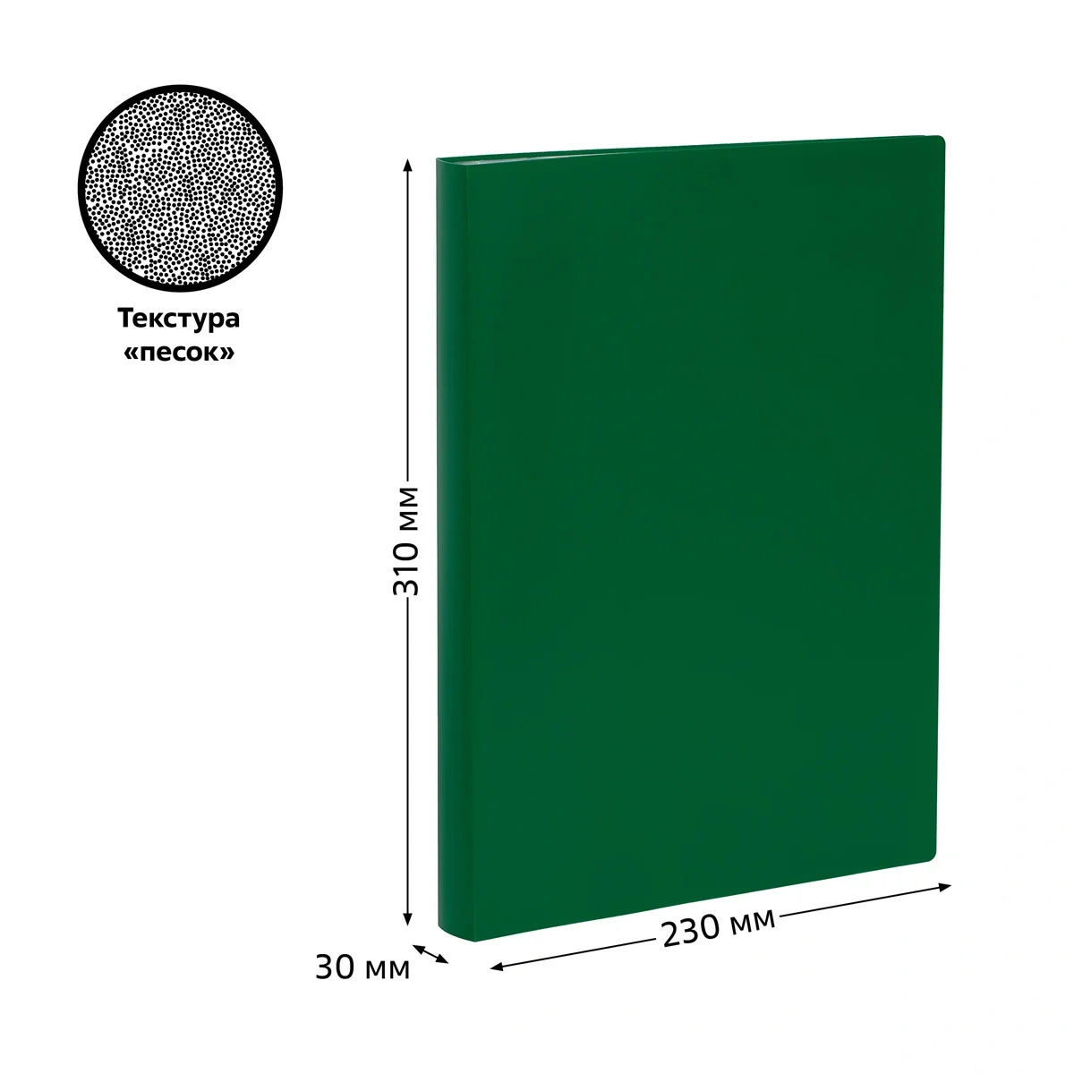 Папка с 80 вкладышами СТАММ предназначена для хранения бумаг формата А4. Модель размером 310*235 мм изготовлена из качественного полипропилена плотностью 600 мкм с текстурой «песок». Ширина корешка – 30 мм. Цвет изделия – зелёный. Бумагам, вложенным в папку, не требуется перфорация дыроколом. Индивидуальная упаковка в пакет.