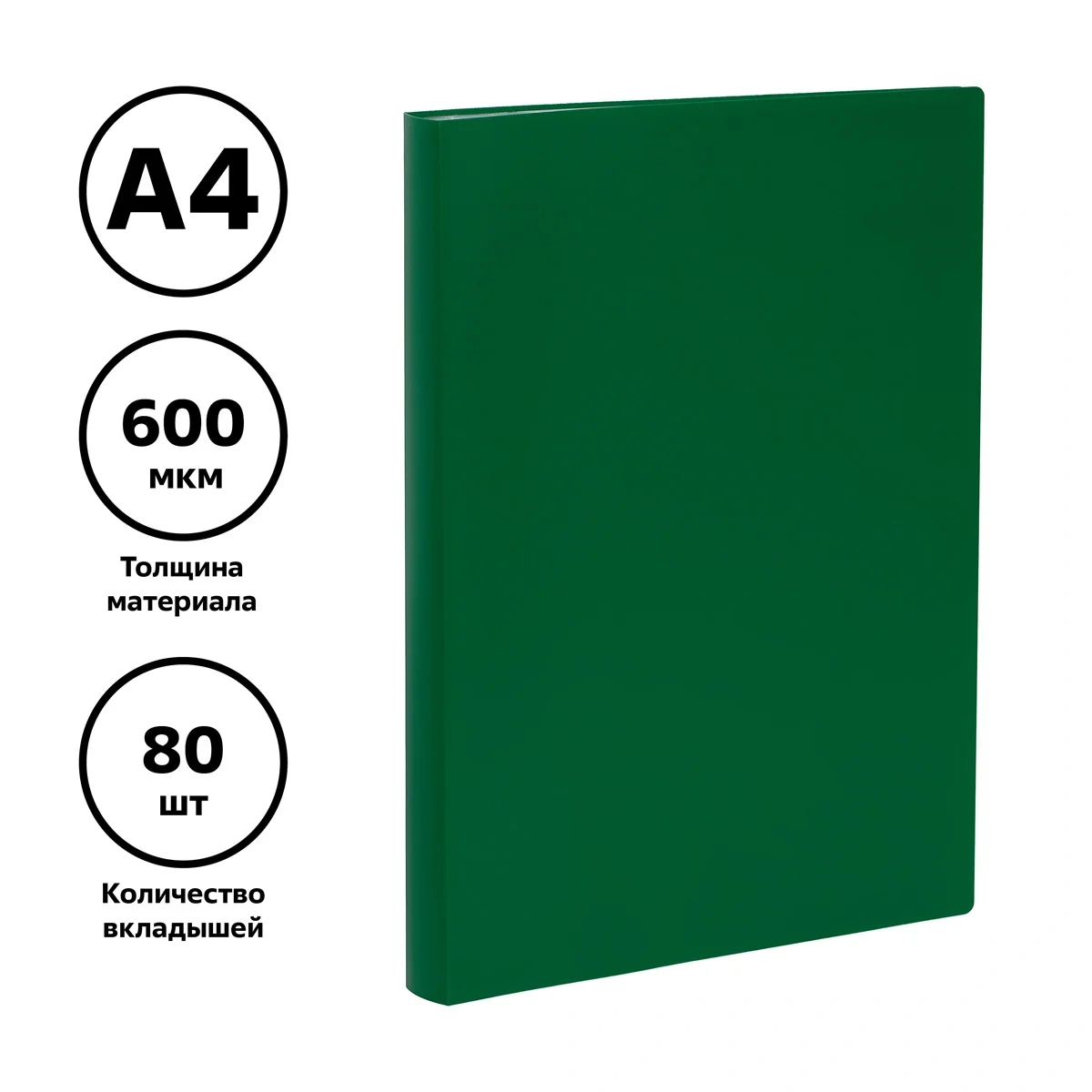 Папка с 80 вкладышами СТАММ А4, 30мм, 600мкм, пластик, зеленая