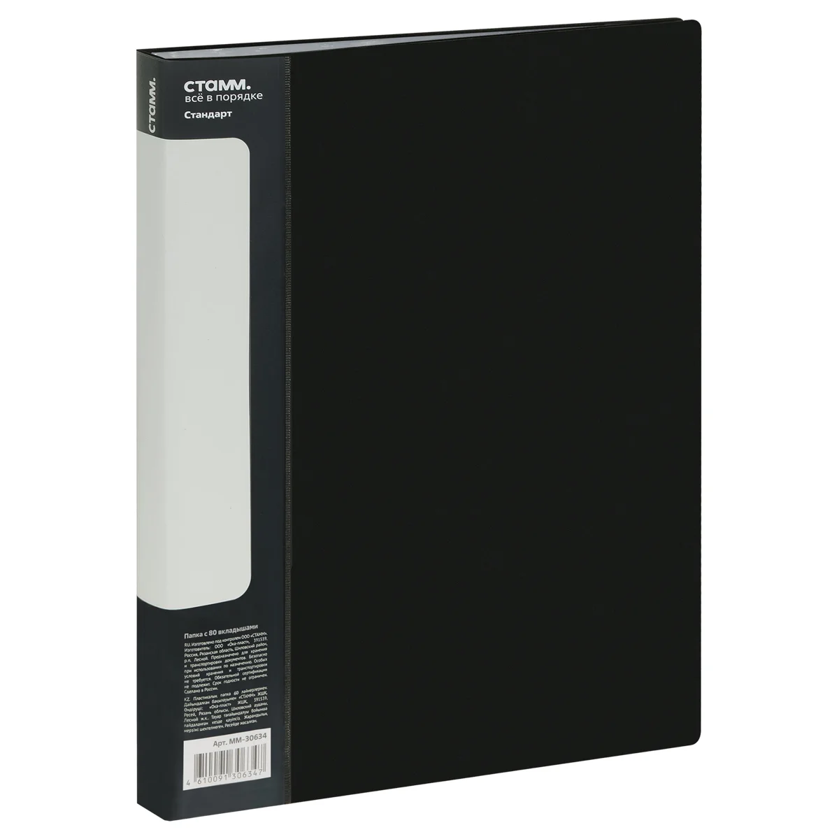 Папка с 80 вкладышами СТАММ 'Стандарт' А4, 30мм, 800мкм, пластик, черная