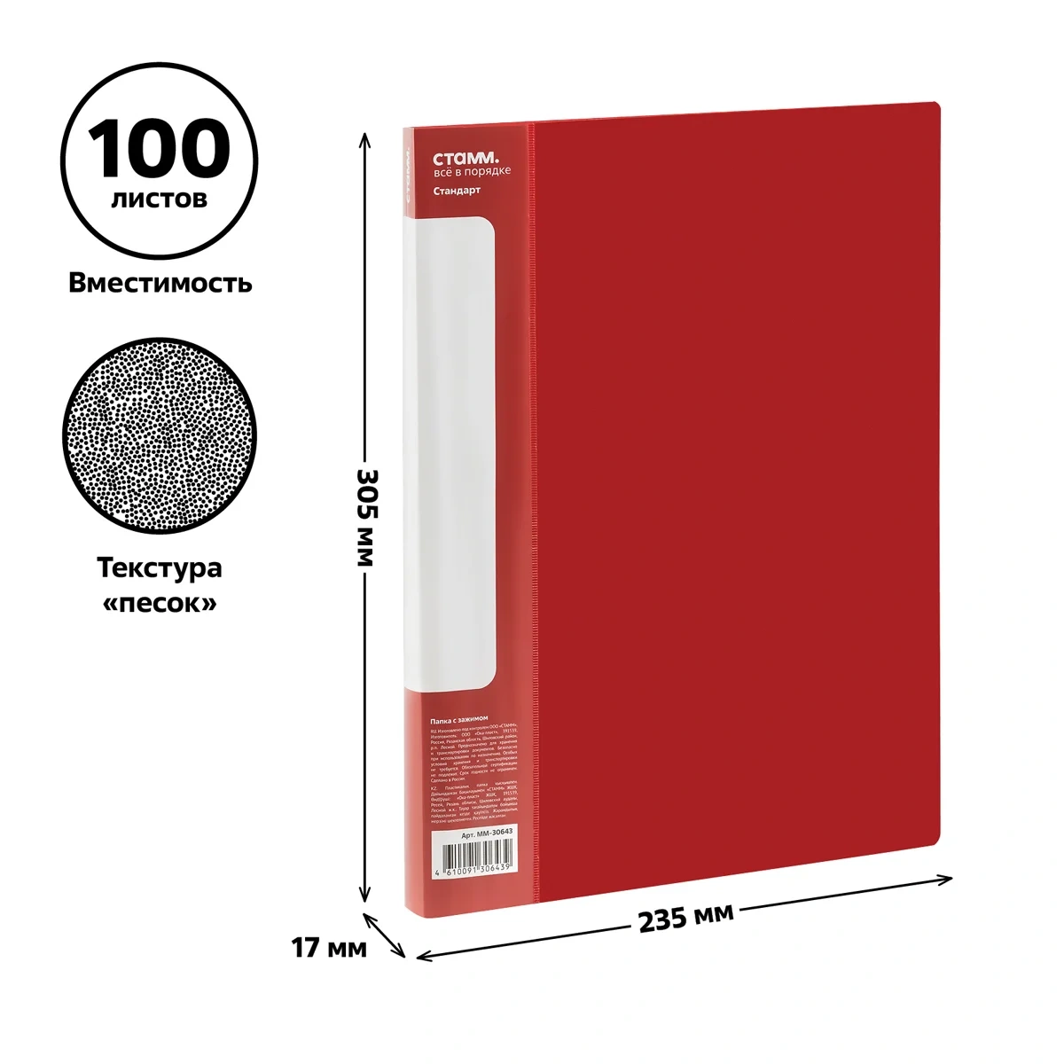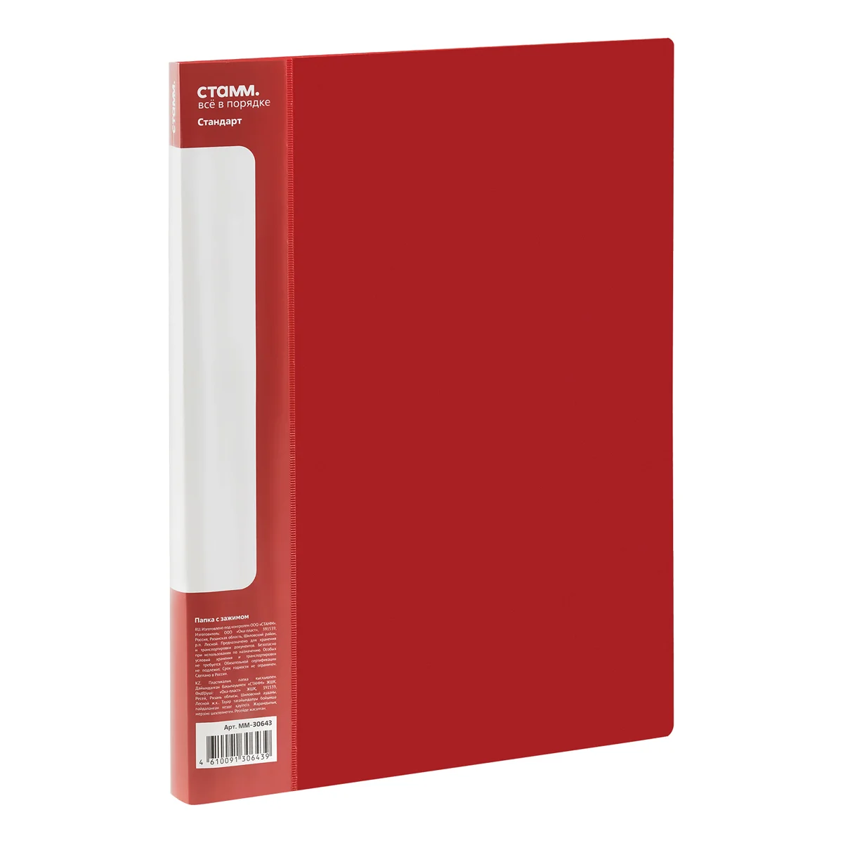 Папка с боковым зажимом СТАММ 'Стандарт' А4, 17мм, 700мкм, пластик, красная