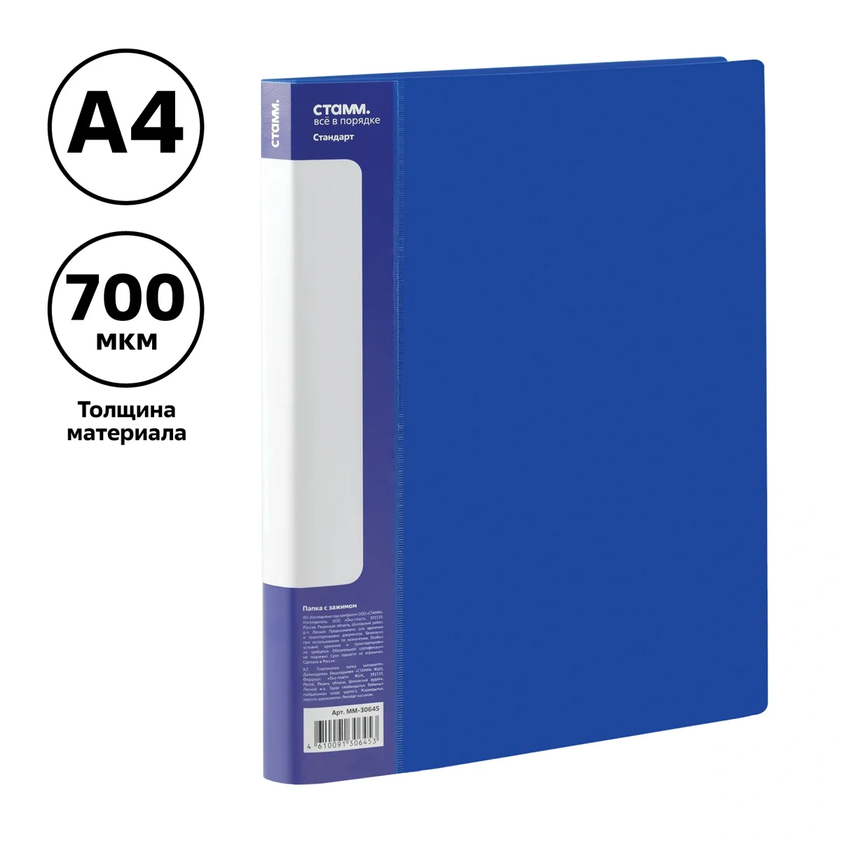 Папка с боковым зажимом СТАММ 'Стандарт' А4, 17мм, 700мкм, пластик, синяя
