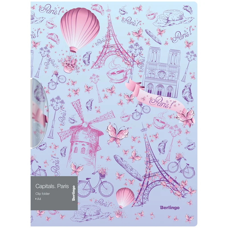 Папка с пластиковым клипом Berlingo 'Capitals. Paris' А4, 450 мкм, с рисунком
