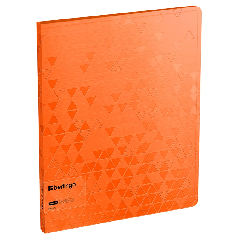 Папка с пружинным скоросшивателем Berlingo Neon размером 310*235*17 мм изготовлена из плотного пластика толщиной 1,0 мм с текстурой «рельефные треугольники». Вместимость папки – 150 листов, ширина корешка – 17 мм. Пружинный механизм надежно держит перфорированные документы и документы, помещенные в файлы-вкладыши. На внутренней стороне обложки оснащена плотным прозрачным карманом для удобного хранения мелочей: ручки, заметок, визиток, дисков, флешек и др. Папка предназначена для транспортировки и хранения бумаг, защищает их от пыли. Индивидуальная упаковка в пакет.