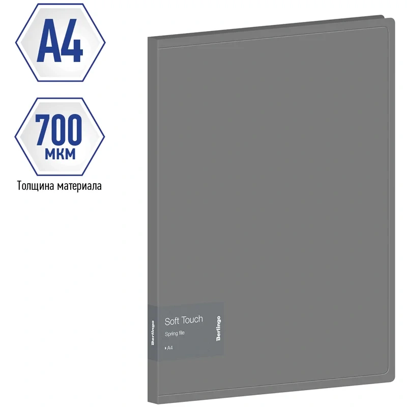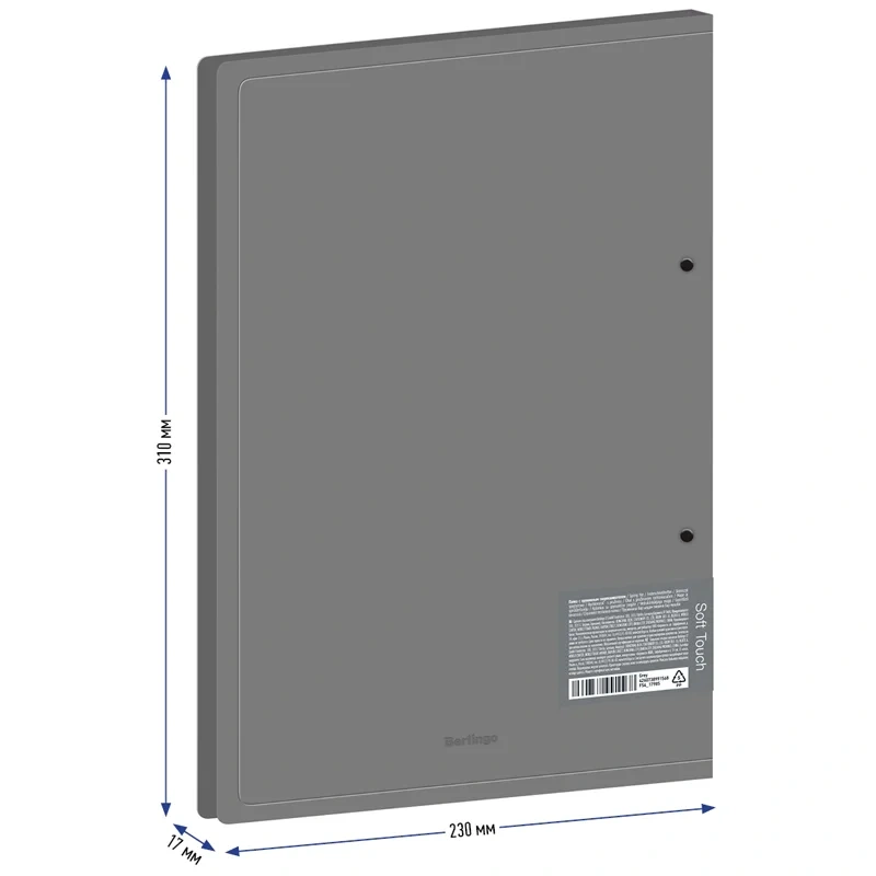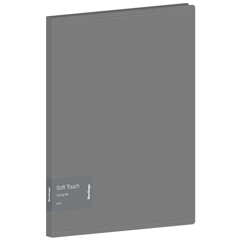 Папка с пружинным скоросшивателем Berlingo 'Soft Touch', 17мм, 700мкм, серая, с внутр. карманом