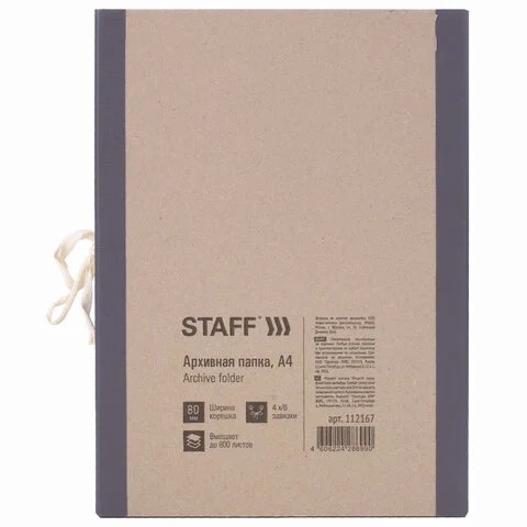 Папка архивная А4 'Форма 21', 80 мм, переплетный картон/бумвинил, завязки, до 800 л., STAFF, 112167