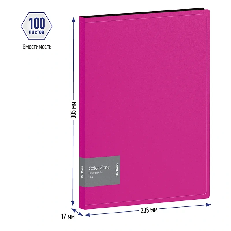 Папка с зажимом Berlingo 'Color Zone', 17мм, 1000мкм, розовая