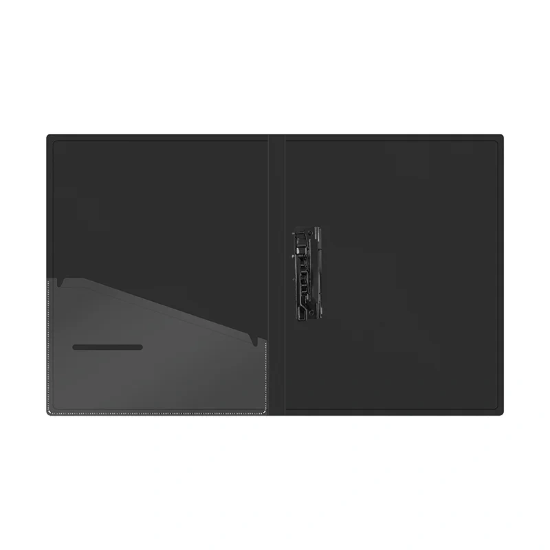 Папка с металлическим прижимным механизмом для бережного хранения документов без перфорации. Изготовлена из плотного фактурного пластика толщиной 1 мм. Яркие насыщенные цвета. Черный цвет внутренней поверхности. Черный цвет зажима. Дополнительный внутренний карман для удобного хранения мелочей. Индивидуальная упаковка в пакет.
