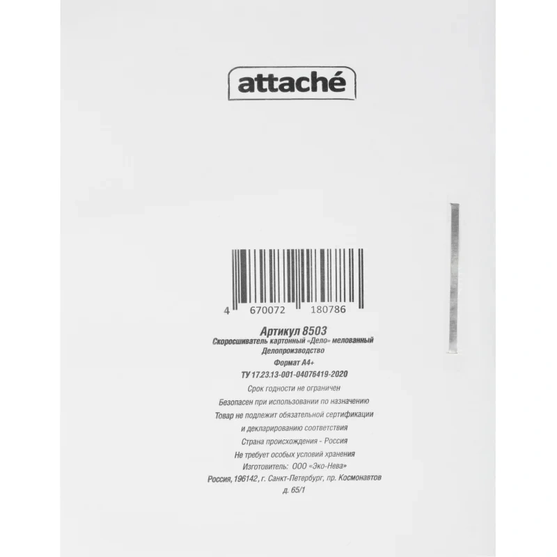 Папка-скоросшиватель ’Дело №’ формата А4 изготовлена из белого мелованного картона (плотность 280 г/кв.м). Оснащена металлическим механизмом сшивания, скоросшиватель крепится с внешней стороны. Длина усиков составляет 45-50 мм. Ширина корешка данного скоросшивателя составляет от 20 до 25 мм. Вместимость — до 200 листов стандартной плотности. Размер папки в сложенном виде составляет 230×310 мм (при этом по ТУ производителя допустимы отступы +/- 5 мм с каждого края). Папки-скоросшиватели упакованы в гофрокороба по 250 штук. Стоимость указана за штуку.