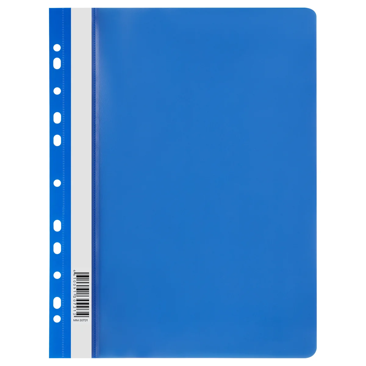 Папка-скоросшиватель «СТАММ» формата А4 предназначена для транспортировки, хранения и систематизации документов. Изделие изготовлено из качественного полипропилена толщиной 120 мкм. Изделие размером 240*310 мм имеет синий цвет с прозрачным верхним листом и снабжена универсальной перфорацией. Вместимость – до 100 листов. Папка защищает документы от пыли, влаги и прочих повреждений.