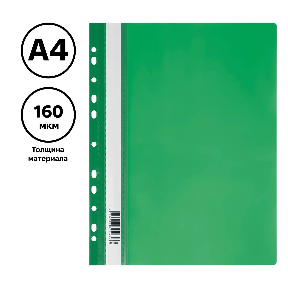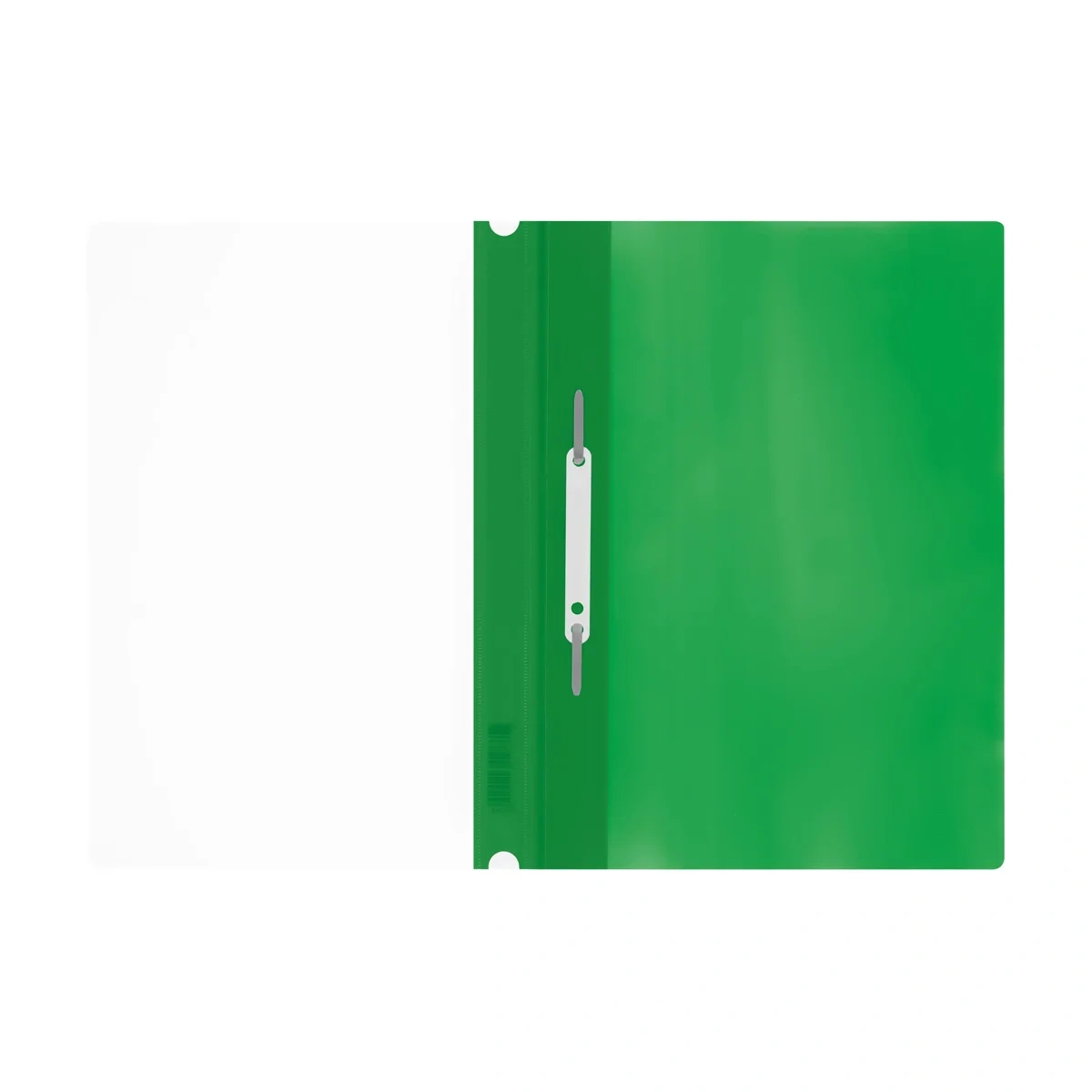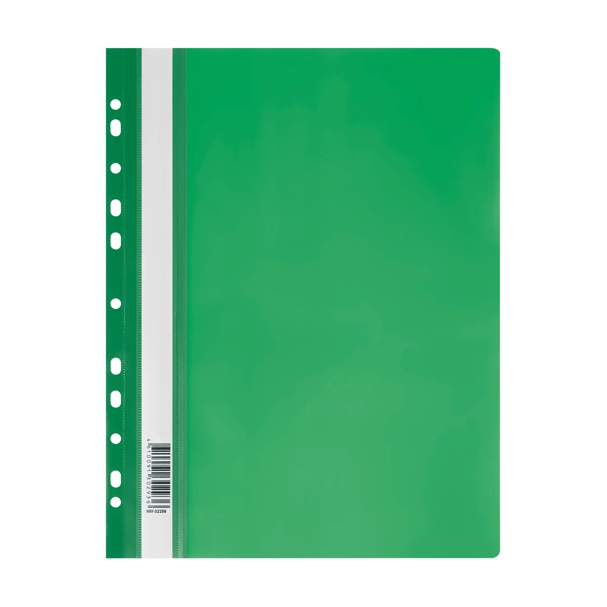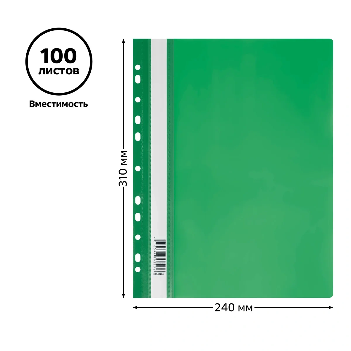Папка-скоросшиватель «СТАММ» формата А4 предназначена для транспортировки, хранения и систематизации документов. Изделие изготовлено из качественного полипропилена толщиной 160 мкм. Изделие размером 240*310 мм имеет зелёный цвет с прозрачным верхним листом и снабжена универсальной перфорацией. Вместимость – до 100 листов. Папка защищает документы от пыли, влаги и прочих повреждений.