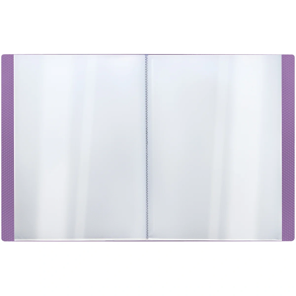 Папка с 100 вкладышами «СТАММ» серии «Кристалл» – отличный помощник для хранения бумаг формата А4. Изделие выполнено в полупрозрачном фиолетовом цвете. Внешняя сторона папки дополнена фактурным паттерном «Кристалл», сохраняющим внешний вид изделия от загрязнений и повреждений. Размер изделия составляет 310*235 мм. Ширина корешка – 30 мм. Тип скрепления – термосварка. Бумагам, вложенным в папку, не требуется перфорация дыроколом. На корешке папки есть удобный карман. Папка упакована в индивидуальный пакет.