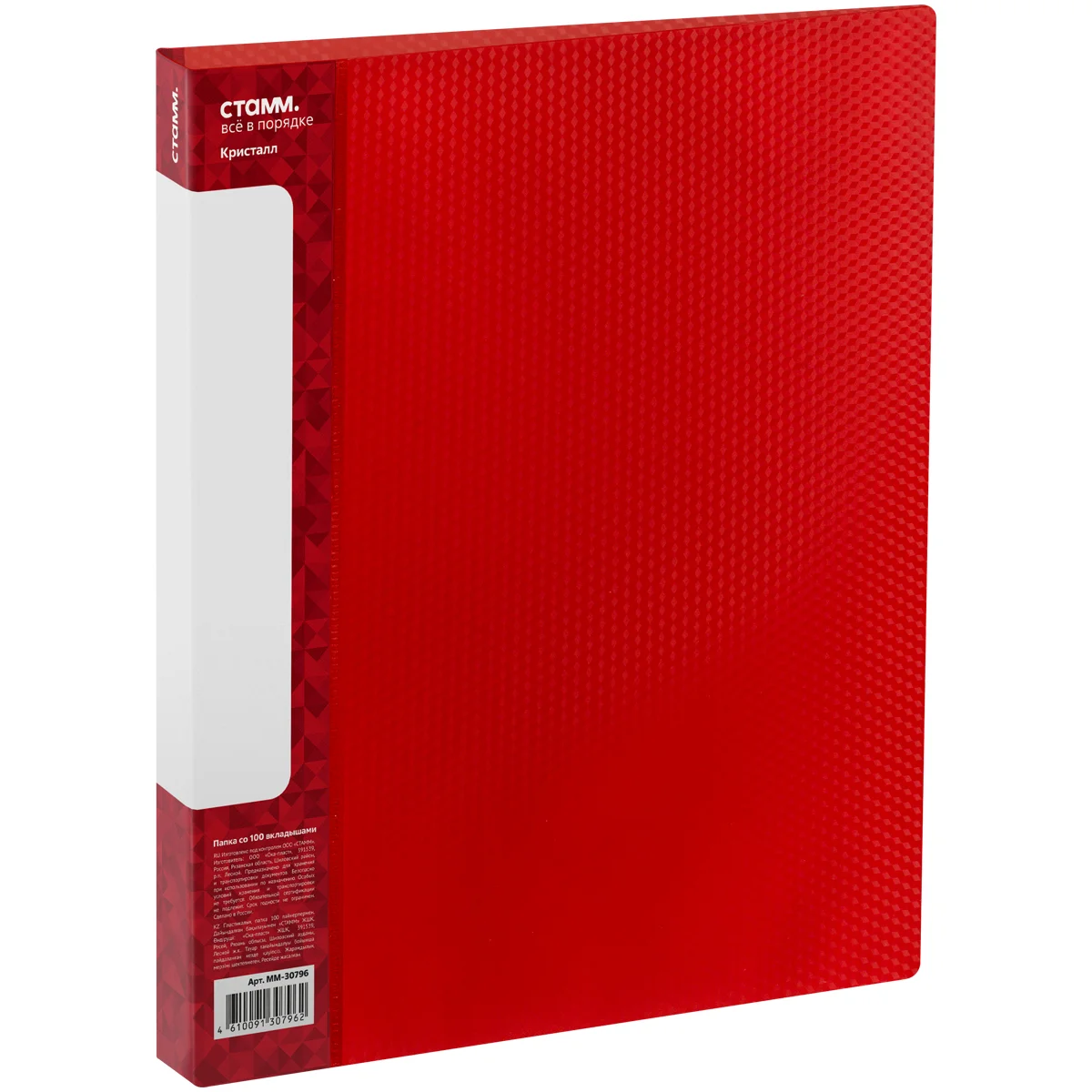 Папка со 100 вкладышами СТАММ 'Кристалл' А4, 30мм, 800мкм, пластик, красная