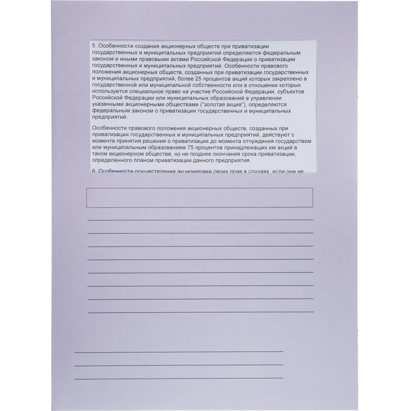 | Наличие кармана на внутренней обложке папки | нет |