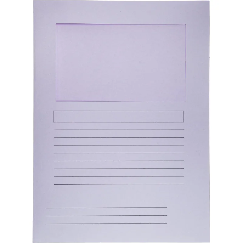Папка уголок размером 230x310 мм изготовлена из картона крашенного в массе, плотностью 230 г/кв.м, имеет окно на лицевой стороне размером 10x17 см. Под окном имеется линовка для записи. Вмещает до 50 листов бумаги форматом А4 плотностью 80 г/м. Для хранения документов. Продается в наборах по 10 штук. В коробе 30 наборов.