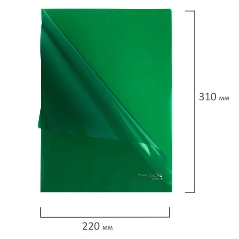 Папка-уголок Brauberg Extra зеленая, А4, 0.15мм