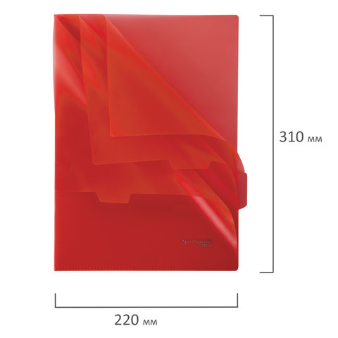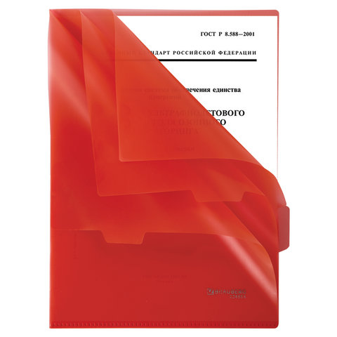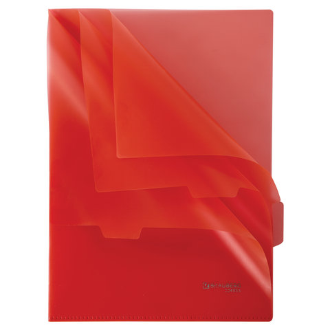Папка-уголок Brauberg красная, А4, 150мкм, с 3 отделениями, 224884