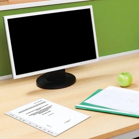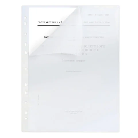 Папка формата А4 выполнена из высококачественного полипропилена плотностью 180 мкм. Она предотвращает смятие, загрязнение или намокание бумаг, а мультиперфорация по краю позволяет подшивать уголок в любую папку. Прозрачный материал позволяет определить содержимое, не открывая папку-уголок. Специальная выемка для перелистывания листов облегчает работу с документами.