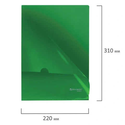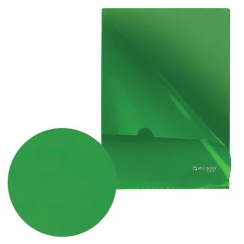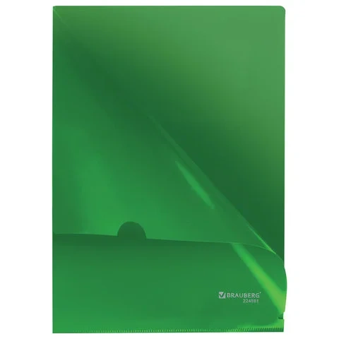 Папка-уголок Brauberg зеленая, А4, 150мкм, 224881