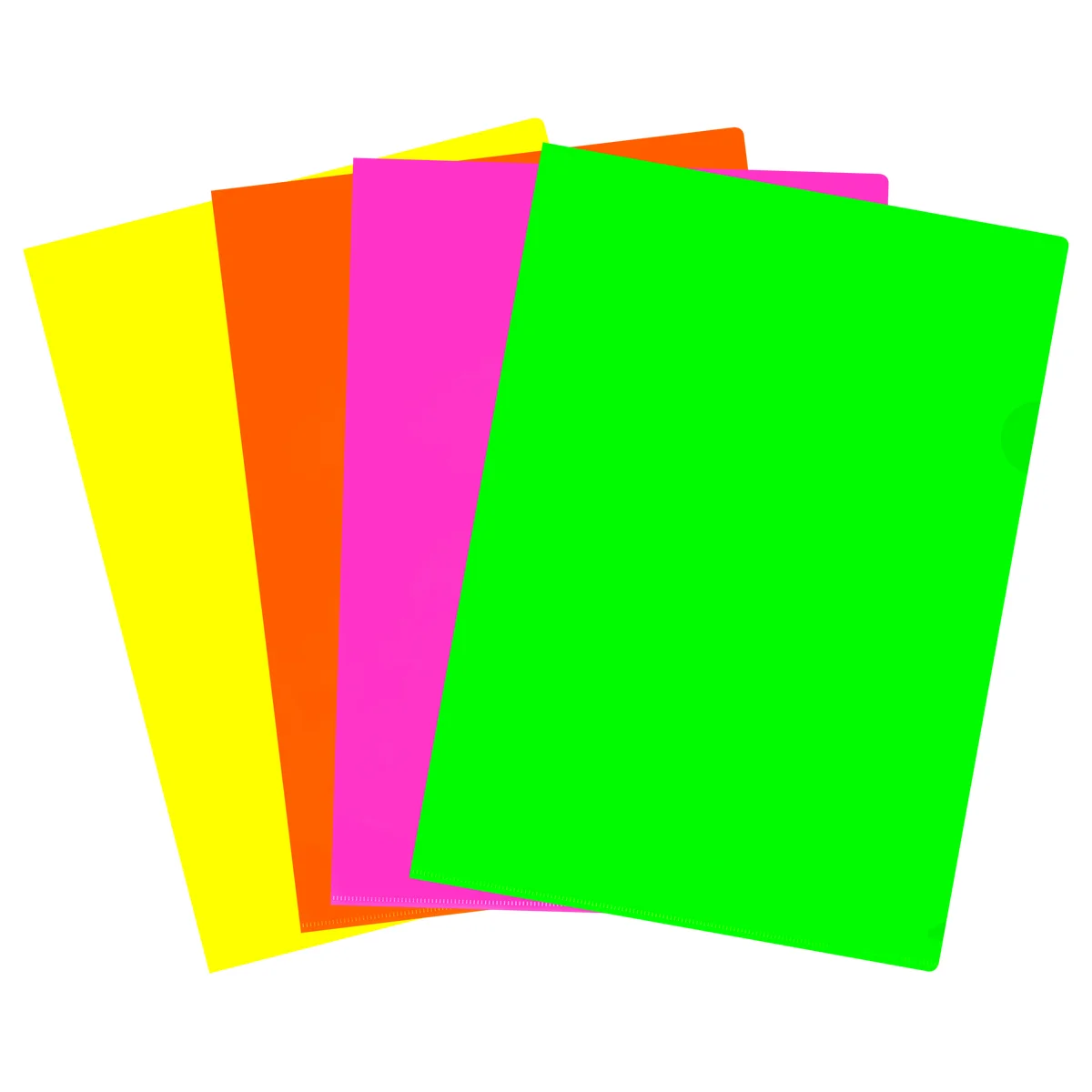 Папка-уголок СТАММ А4, 150мкм, пластик, прозрачная, неон, ассорти