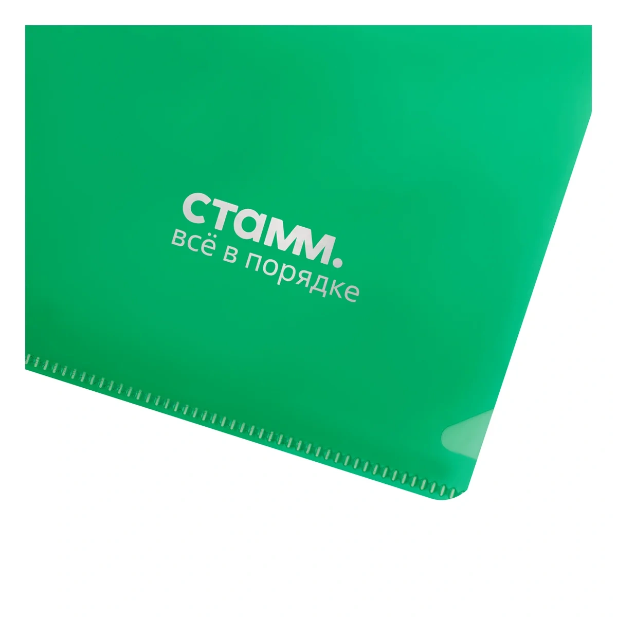 Папка-уголок СТАММ А5, 180мкм, пластик, прозрачная, зеленая