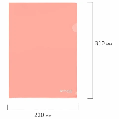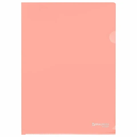 Папка-уголок жесткая, непрозрачная, А4, цвет персиковый, 0,15 мм, BRAUBERG PASTEL, 272891