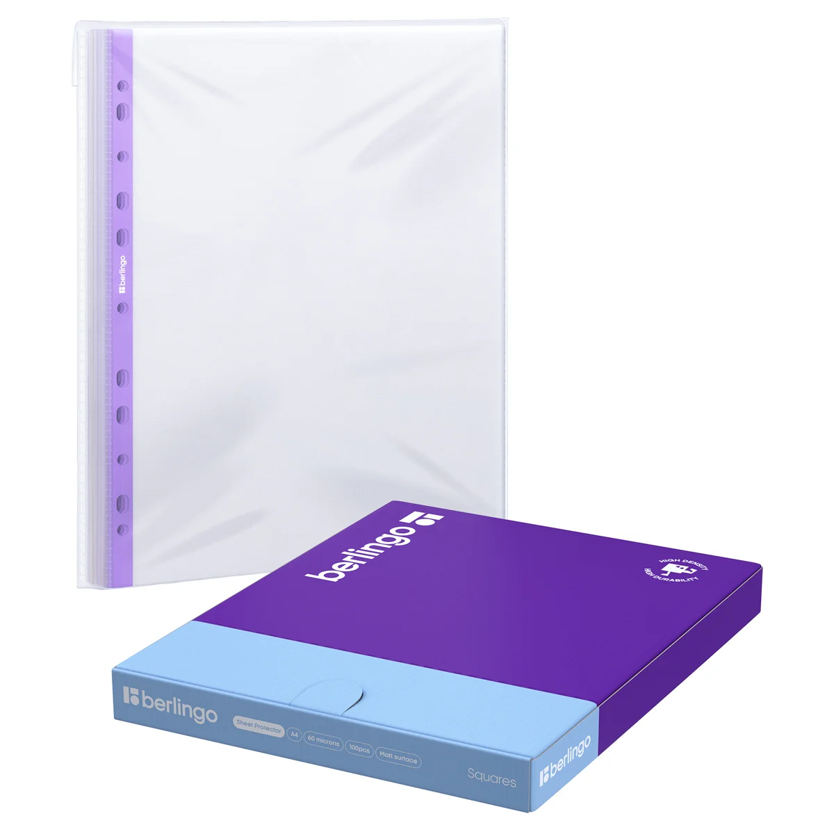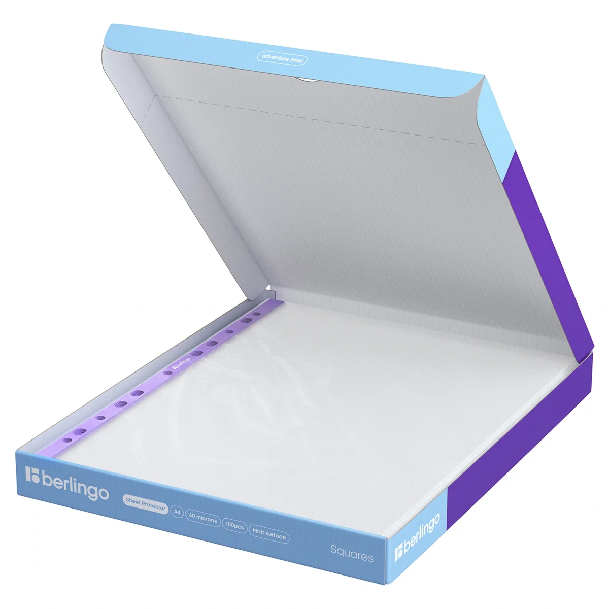 Папка-вкладыш с перфорацией Berlingo 'Squares', А4, 60мкм, рельефная текстура, матовая, упак 100 шт