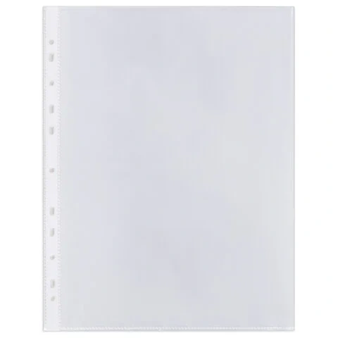 Перфопапки формата А4 с вертикальным размещением содержат универсальную перфорацию, а также имеют гладкую поверхность и прочные швы. Файлы являются незаменимым атрибутом в офисе, позволяют систематизировать документы и обеспечивают их сохранность на долгое время. Изготовлены из прочной пленки толщиной 70 мкм. В комплект входит 50 перфопапок.