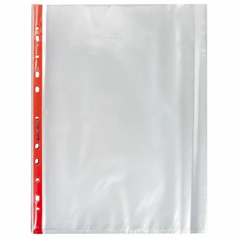 Папки-файлы перфорированные с цветными полосками А4 BRAUBERG, КОМПЛЕКТ 100 шт., гладкие, 30 мкм, 271