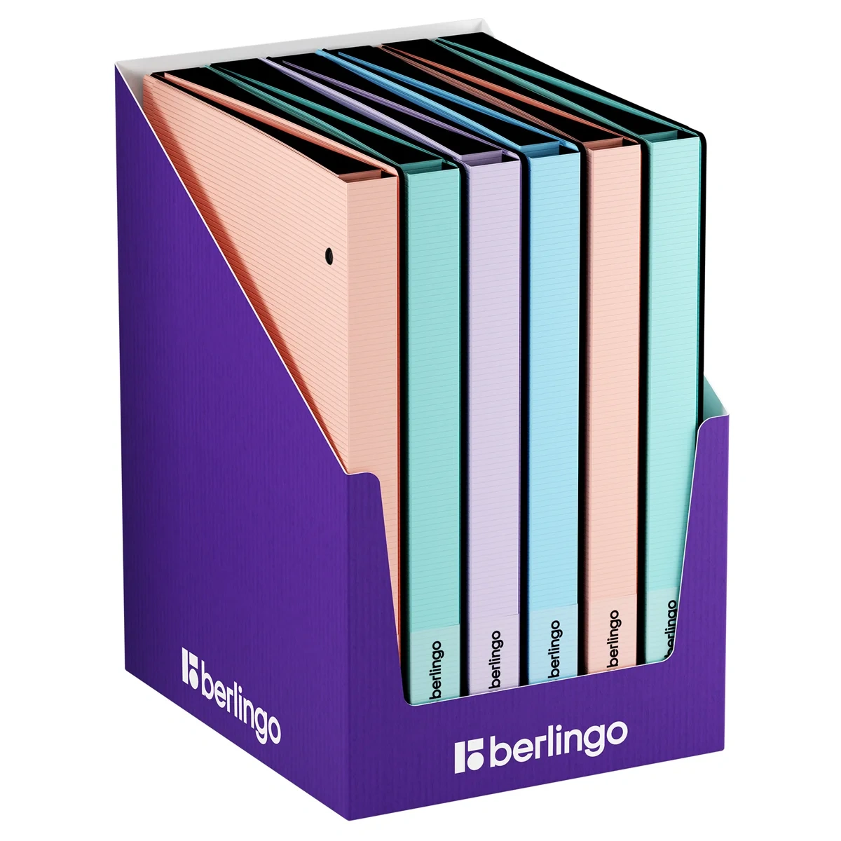 Папка на 4 кольцах Berlingo 'Haze' А4, 24мм, 600мкм, D-кольца, с внутр. карманом, софт-тач, ассорти