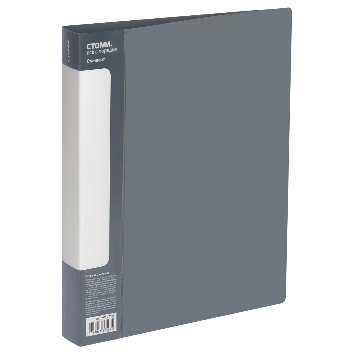 Папка на 2 кольцах СТАММ 'Стандарт' А4, 40мм, 700мкм, пластик, серая