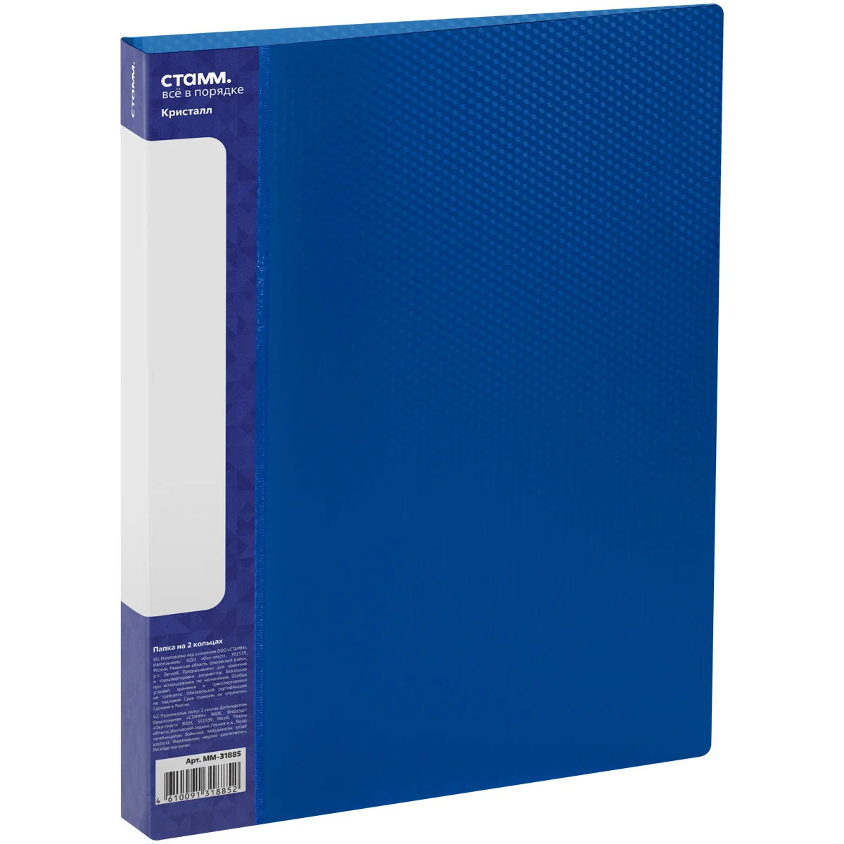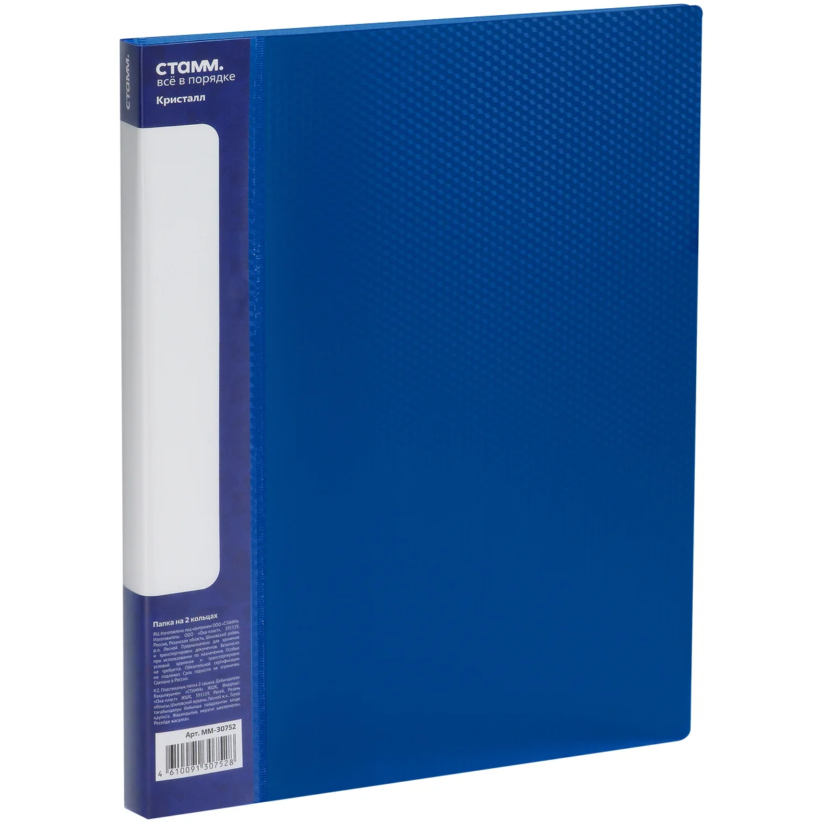 Папка на 2 кольцах СТАММ 'Кристалл' А4, 25мм, 700мкм, пластик, синяя