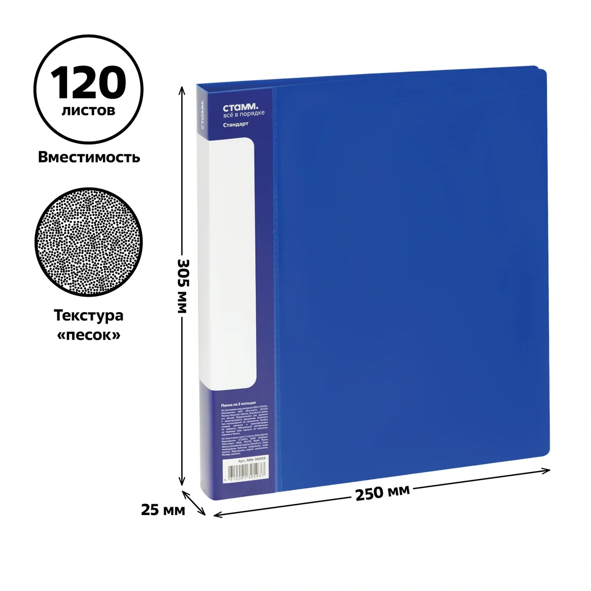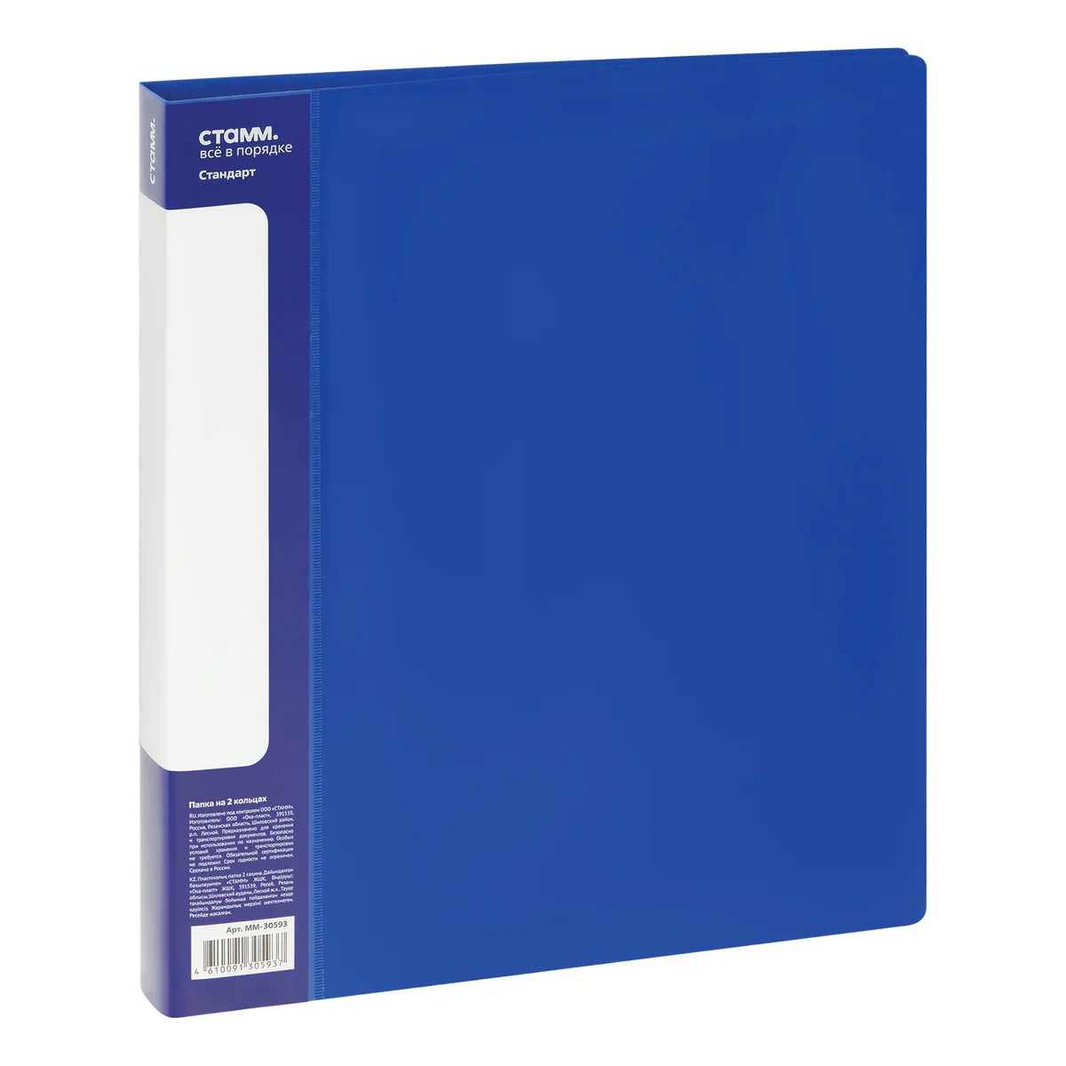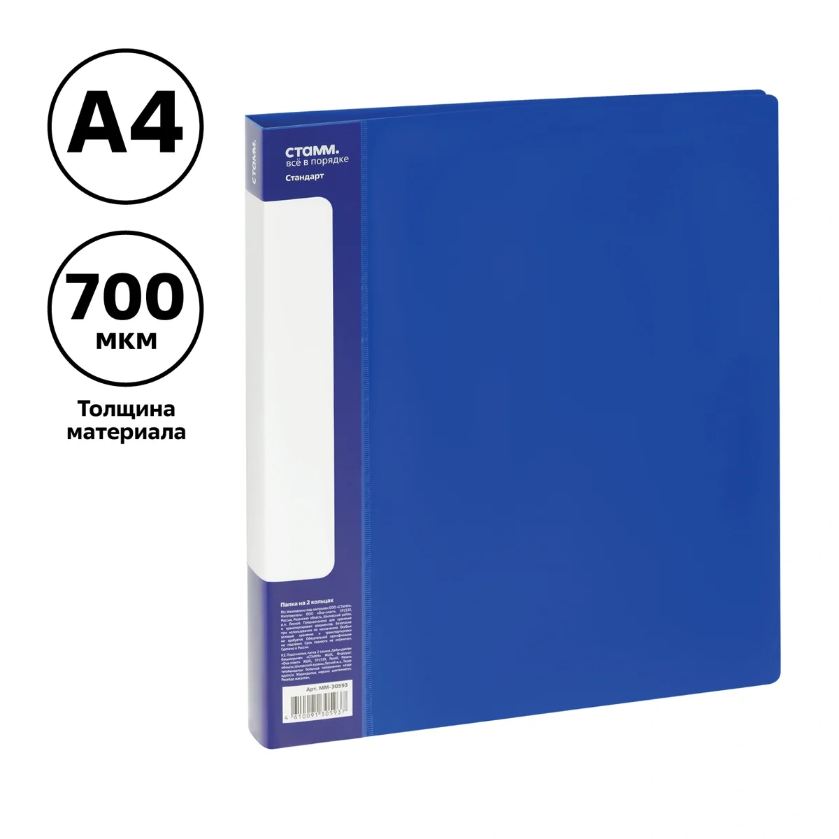 Папка на 2 кольцах СТАММ 'Стандарт' А4, 25мм, 700мкм, пластик, синяя