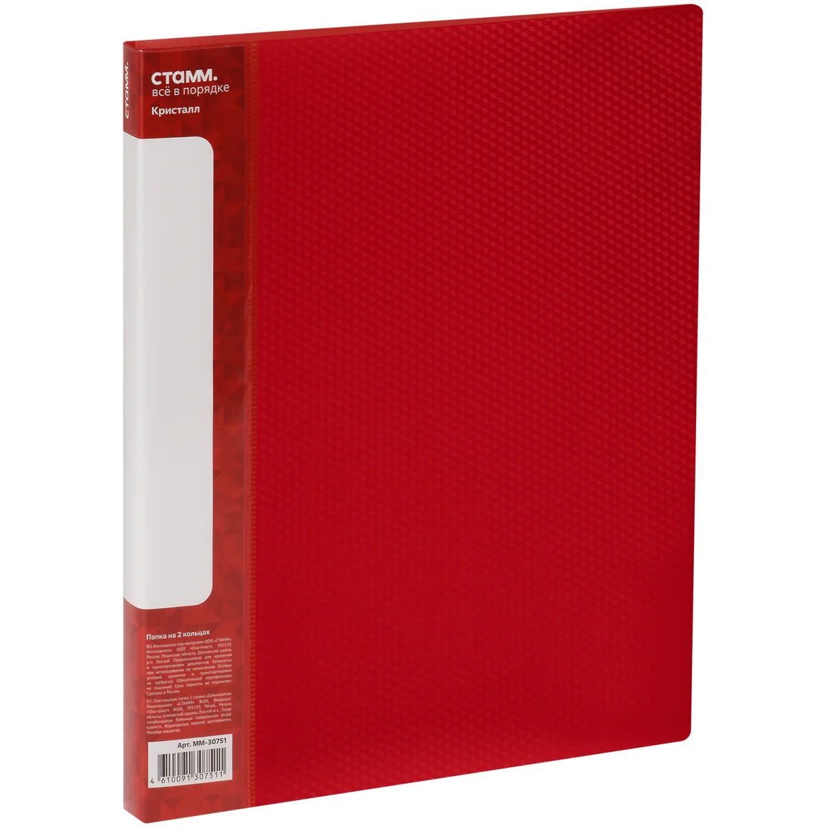 Папка на 2 кольцах СТАММ 'Кристалл' А4, 40мм, 700мкм, пластик, красная