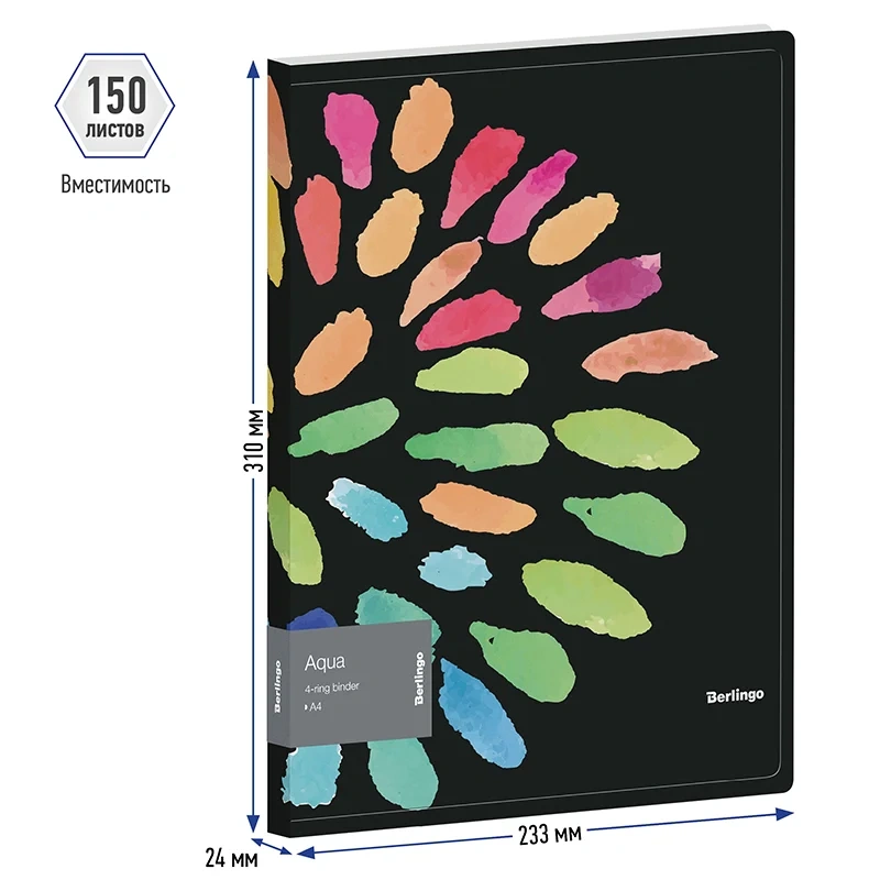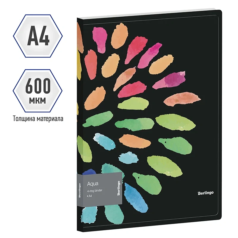 Папка на 4 кольцах Berlingo 'Aqua', 24мм, 600мкм, D-кольца, с внутр. карманом, с рисунком