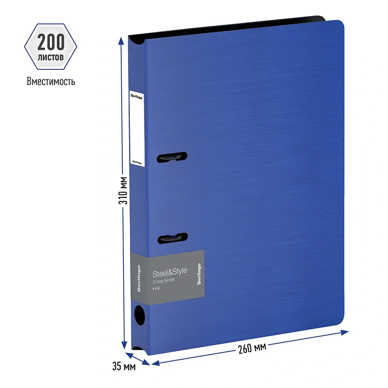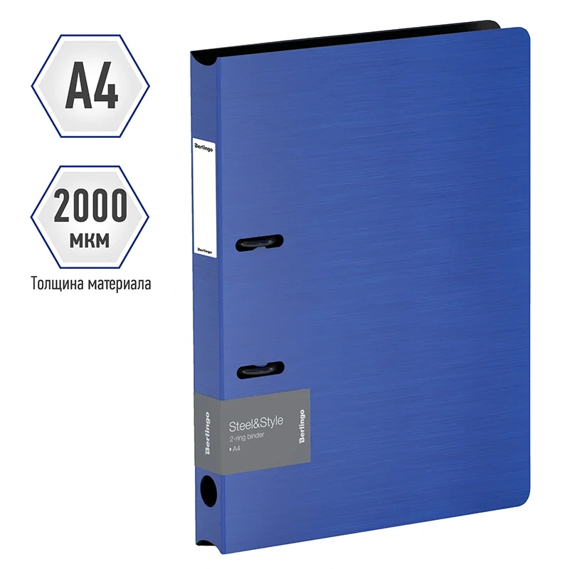 Папка на 2 кольцах Berlingo 'Steel&Style', 35мм, 2000мкм, D-кольца, пластик (полифом), синяя