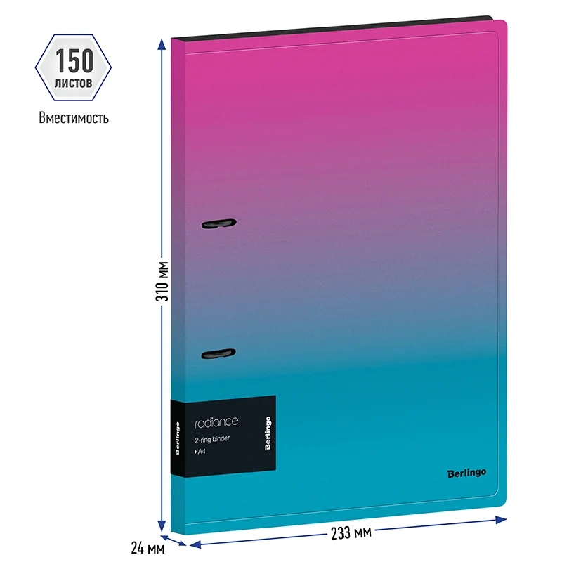 Папка на 2 кольцах Berlingo 'Radiance', 24мм, 600мкм, D-кольца, с внутр. карманом, розовый/голубой г