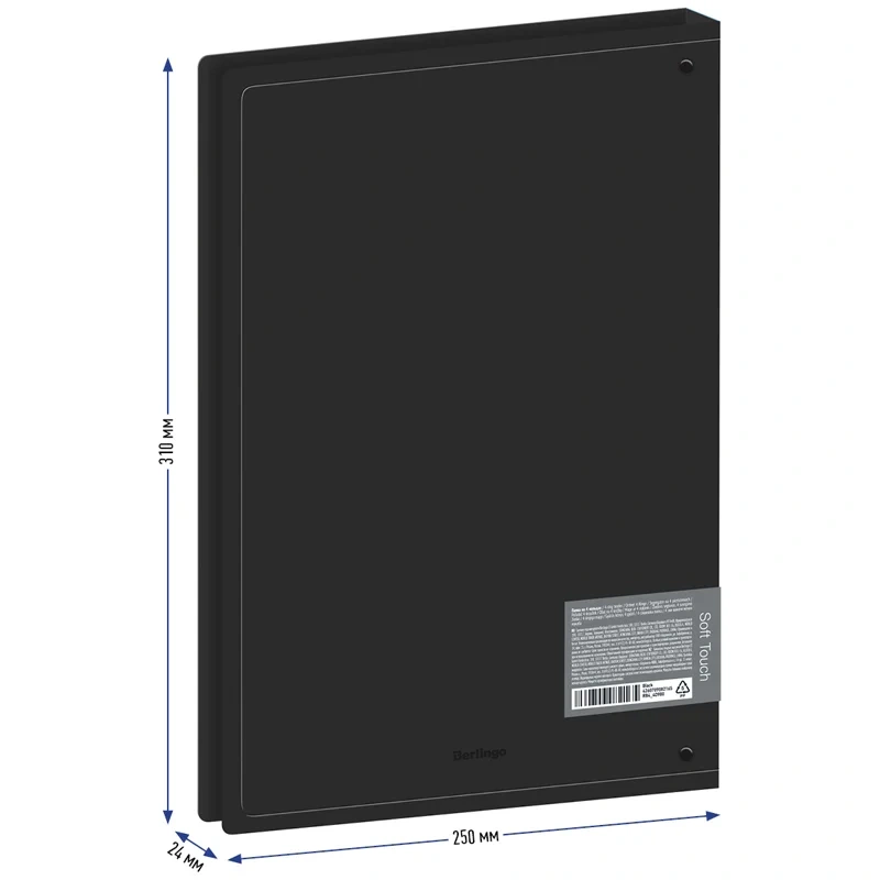 Папка на 4 кольцах Berlingo 'Soft Touch', 24мм, 700мкм, черная, D-кольца, с внутр. карманом