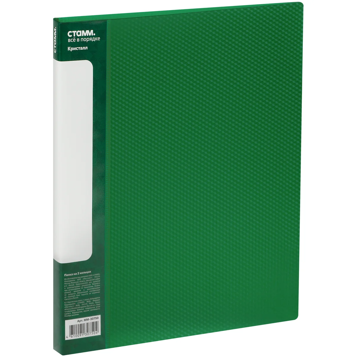 Папка на 2 кольцах СТАММ 'Кристалл' А4, 25мм, 700мкм, пластик, зеленая