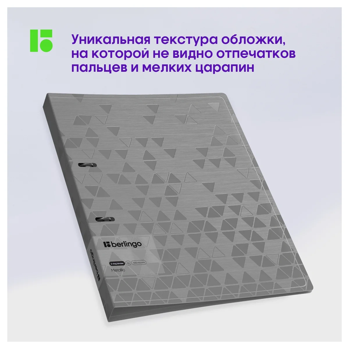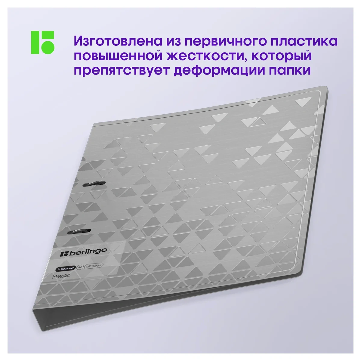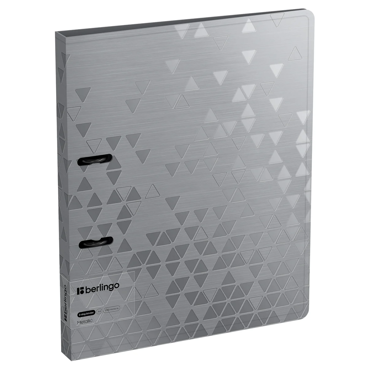 Папка на 2 кольцах Berlingo 'Metallic', 24мм, 1000мкм, серебряный металлик, D-кольца, с внутр. карма