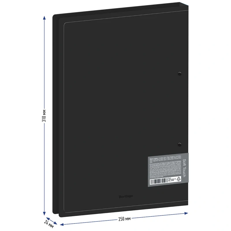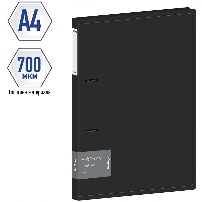 Папка на 2 кольцах Berlingo 'Soft Touch', 24мм, 700мкм, черная, D-кольца, с внутр. карманом