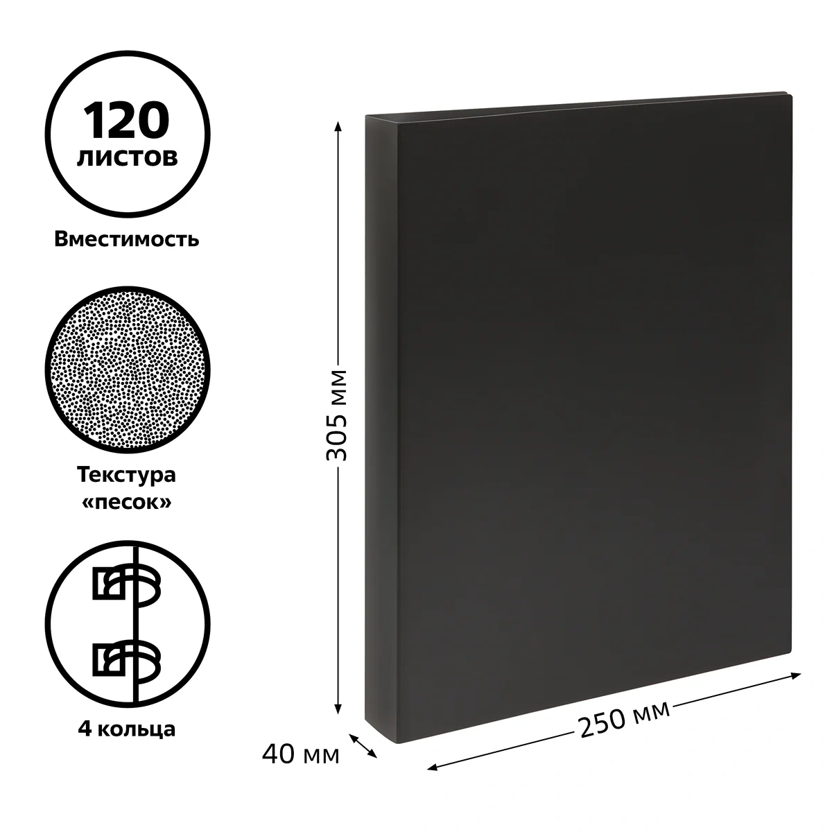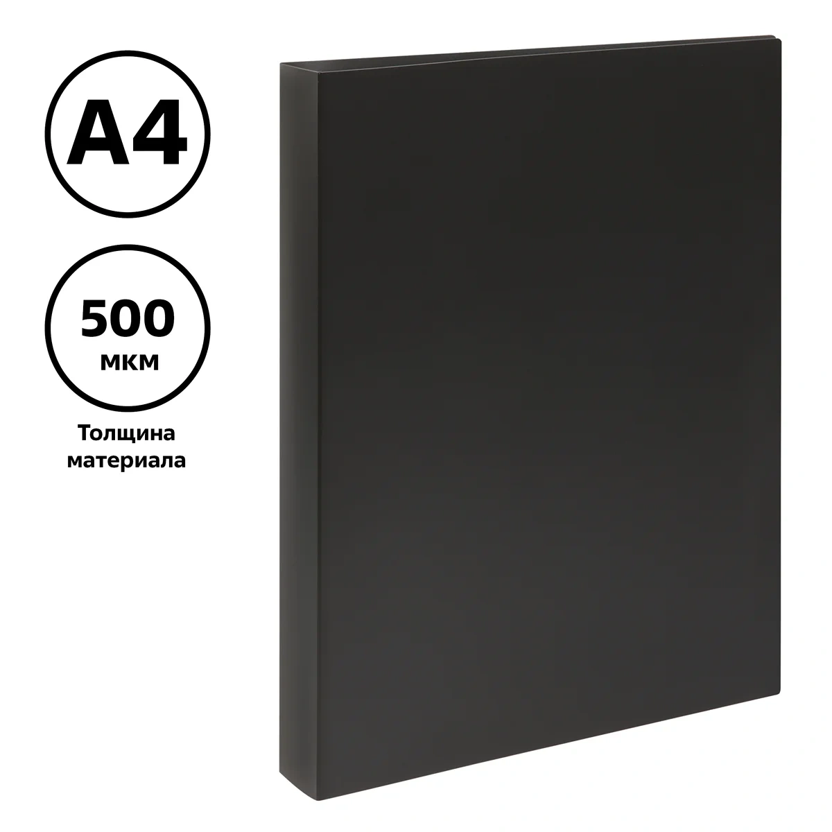 Папка на 4 кольцах СТАММ А4, 40мм, 500мкм, пластик, черная